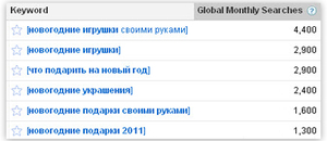 - При подборе слов в Google Planner используйте Exact Match — он покажет точное соответствие словосочетанию: [новогодние игрушки]. Эти позволяет точно определить ежемесячный объем поиска для данной фразы, а также исключить ненужные слова.